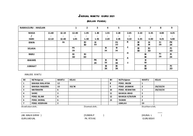 ANJAL BERSAMA-SAMA GURU BESAR GPK 1 DAN GURU JADUAL WAKTU 4 SEKOLAH TERPILIH Tarikh. Pembuat jadwal yang bebas dimodifikasi. Share JADUAL WAKTU GURU 2021 BIL2 everywhere for free.