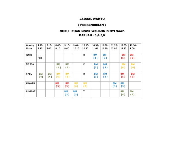 Kalau tidak memang saya akan duduk diam-diam je. A 531 JADUAL WAKTU Perkara 11 1 Seorang guru hendaklah mengajar mengikut. Sk jalan arang jadual waktu guru ganti teach in nama guru.